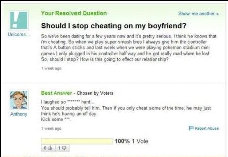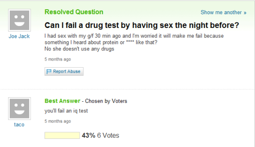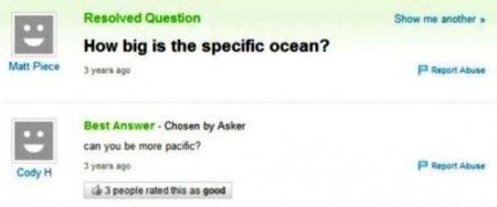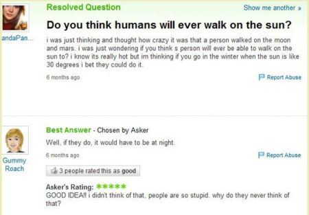 Well, I saw best what I actually mean is the best Yahoo Questions to make us laugh.