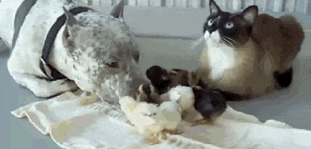 Awwww, a dog with a pile of chicks