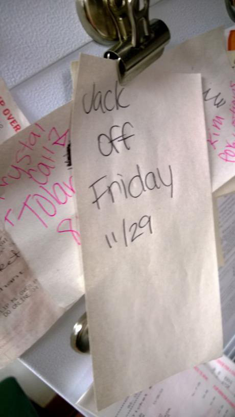 I hope this means that someone called Jack is not at work on Friday, the alternatives however sound much more interesting