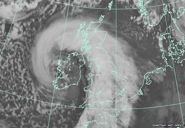 Have a nice satellite image of the weather we’re facing courtesy of the BBC.